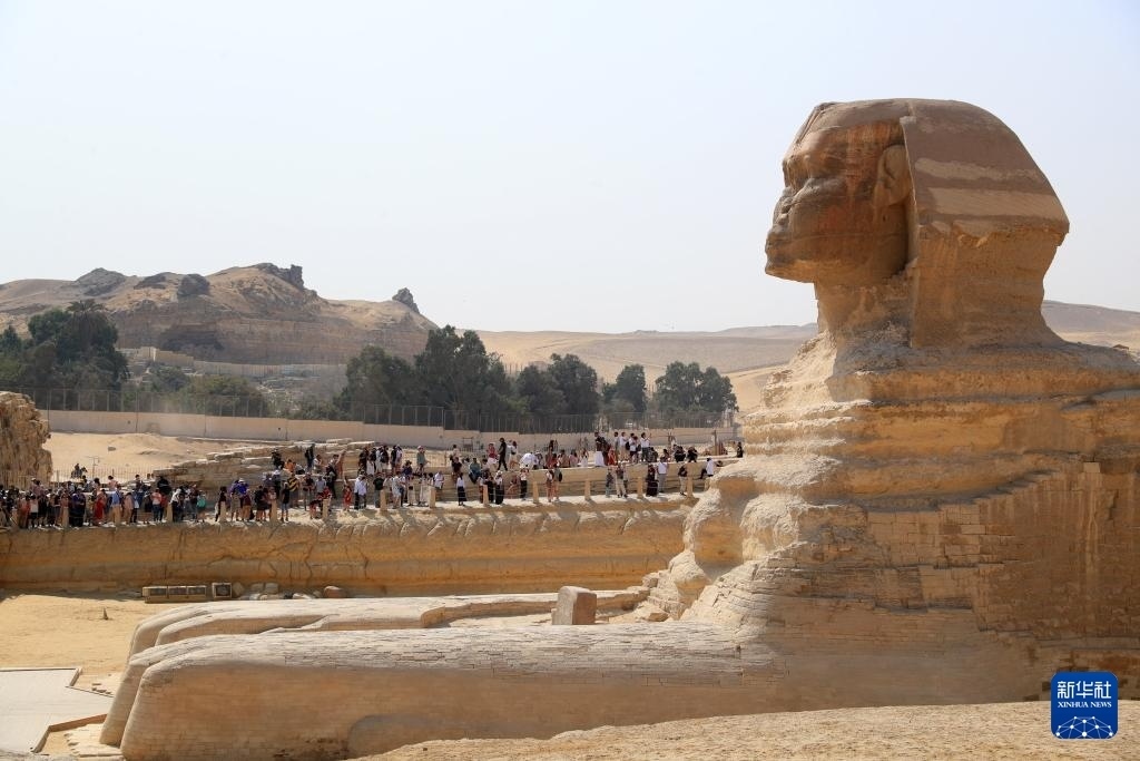 10月19日,游客在埃及吉薩金字塔景區(qū)參觀獅身人面像。