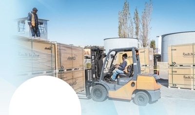 在中建材南非海外倉,當?shù)貑T工正在裝卸貨物。本報非洲中心分社 希拉茲·莫林攝