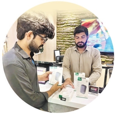 中國企業(yè)位于巴基斯坦的海外倉將中國制造的數(shù)碼產品等高附加值貨物快速配送至本地線下零售商網絡,顯著提升效率和靈活性。圖為海外倉的送貨員正在與當?shù)厣虘艚唤迂浳?。本報巴基斯坦分?賽義德·邁赫迪攝