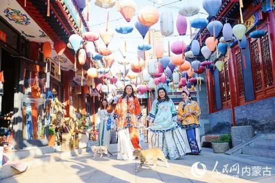 大盛魁博物館整體建筑風(fēng)格為清末民國至上世紀40年代歸化城(今呼和浩特市)街區(qū)風(fēng)貌。外媒記者“小姐姐”們現(xiàn)場“換裝”,體驗各式中華傳統(tǒng)服飾。來自巴勒斯坦國家電視臺的主持人拉尼婭·哈姆達拉,換了一身鮮艷的橘色服飾,行走園中,宛若“穿越”時光。