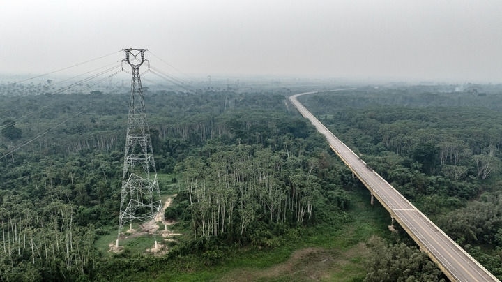 這張2024年9月13日拍攝的照片顯示,在巴西朗多尼亞州,EDP輸變電項(xiàng)目線路穿越熱帶雨林(無人機(jī)照片)。巴西EDP輸變電項(xiàng)目是位于巴西北部的阿克里州和朗多尼亞州的綠地輸變電工程,山東電建一公司承擔(dān)了該項(xiàng)目的EPC總承包任務(wù)。項(xiàng)目全面完成后,將極大提升當(dāng)?shù)仉娋W(wǎng)的輸電能力,增強(qiáng)電力供應(yīng)的可靠性和穩(wěn)定性,對巴西北部地區(qū)的可持續(xù)發(fā)展和經(jīng)濟(jì)增長具有重要意義。新華社記者 王天聰 攝