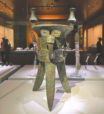 殷墟位于河南安陽市西北郊,是中國第一個有文獻(xiàn)記載并經(jīng)甲骨文及考古發(fā)掘所證實的商代晚期都城遺址,也是世界青銅文明的重要代表。殷墟博物館與殷墟宗廟宮殿區(qū)隔河相望,是全景式展現(xiàn)商文明的國家重大考古專題博物館。圖為殷墟博物館里展出的殷墟婦好墓出土的銅斝。人民網(wǎng)俄文專家 葉列娜·達(dá)維多娃攝 殷墟博物館是一座歷史文化的寶庫。在這里,我近距離地觀察一件件青銅器,仿佛看到其上閃爍著的中國古人智慧的火花;我端詳一片片的甲骨,試圖解讀那些古老的文字,仿佛在與中國古人跨越時空對話。在這里,我看到了考古學(xué)家如何不遺余力地保護(hù)歷史,也觀察到年輕的甲骨文愛好者們不斷用新鮮創(chuàng)意為文物保護(hù)注入新的生命力,這份傳承讓我深受觸動。