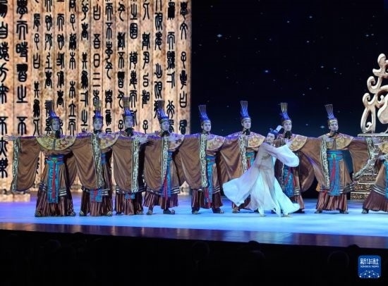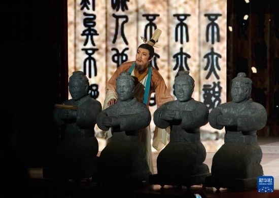 11月6日,演職人員在表演民族舞劇《孔子》片段。