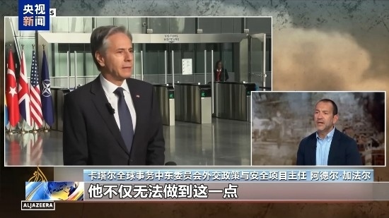 卡塔爾全球事務中東委員會外交政策與安全項目主任 阿德爾·加法爾:過去一年多布林肯已經(jīng)去了中東至少11次,和中東國家領導人會面,他試圖推動以色列結束戰(zhàn)爭,但到目前為止,他不僅無法做到這一點,而且美國還在外交政策上偏袒以色列,不斷提供武器和資金支持。