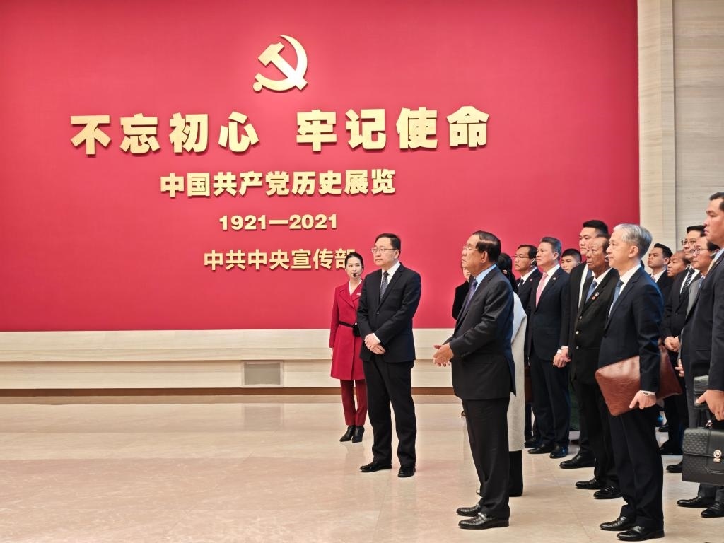 “了解研究歷史,對(duì)推進(jìn)實(shí)現(xiàn)國(guó)家富強(qiáng)、開(kāi)創(chuàng)人類(lèi)美好未來(lái)具有重要意義?!?2月4日上午,正在對(duì)中國(guó)進(jìn)行正式友好訪問(wèn)的柬埔寨人民黨主席、參議院主席洪森專(zhuān)程來(lái)到中國(guó)共產(chǎn)黨歷史展覽館參觀。一張張歷史圖片、一件件文獻(xiàn)實(shí)物、一個(gè)個(gè)逼真場(chǎng)景……展廳內(nèi),洪森不時(shí)駐足,由衷贊嘆中國(guó)共產(chǎn)黨領(lǐng)導(dǎo)中國(guó)取得的發(fā)展成就。
