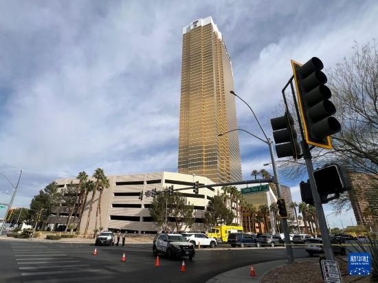 1月1日,在美國內華達州拉斯維加斯,警方封鎖發(fā)生電動汽車爆炸事件的特朗普酒店門前區(qū)域。新華社記者 譚晶晶 攝