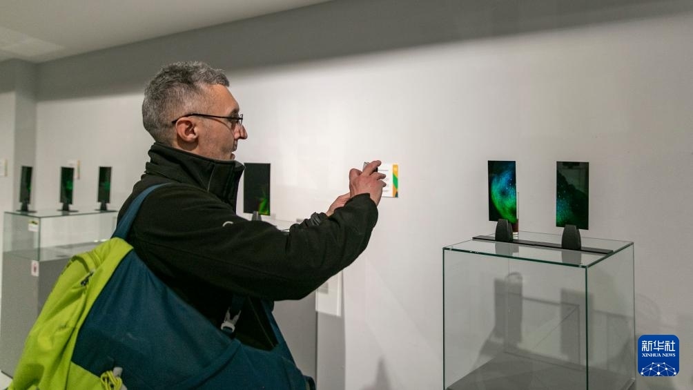 4月10日,觀眾在塞爾維亞貝爾格萊德舉行的“光印——中塞友誼70載全息影像特展”上參觀。