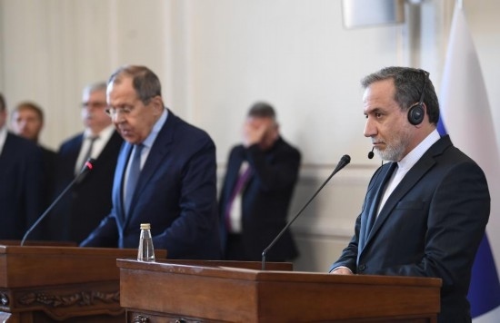 2025年2月25日,在伊朗德黑蘭,伊朗外交部長(zhǎng)阿拉格齊(右)與俄羅斯外長(zhǎng)拉夫羅夫出席聯(lián)合新聞發(fā)布會(huì)。新華社記者沙達(dá)提攝