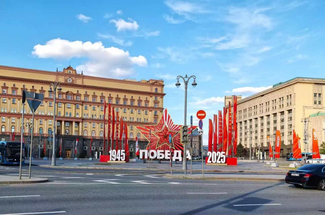 當(dāng)?shù)貢r(shí)間5月6日,莫斯科盧比揚(yáng)卡廣場(chǎng)布置紀(jì)念蘇聯(lián)偉大衛(wèi)國戰(zhàn)爭(zhēng)勝利80周年的標(biāo)語。鄺西曦 攝
