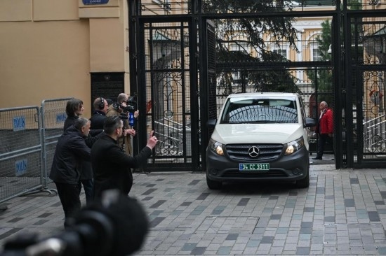 4月10日,在土耳其伊斯坦布爾,載有美國代表的車輛駛離俄羅斯駐伊斯坦布爾總領(lǐng)館。新華社記者劉磊攝