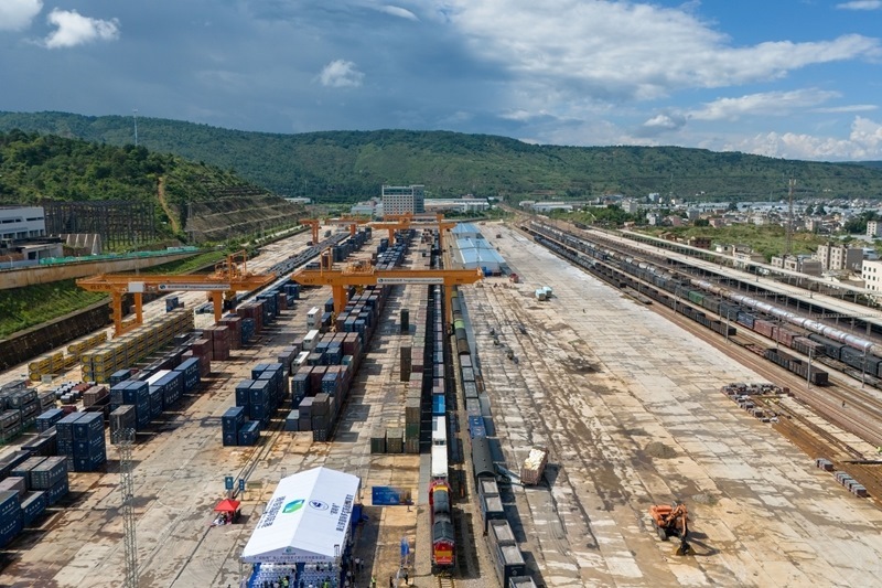 當(dāng)日下午,“鄭和號”海公鐵國際多式聯(lián)運班列首發(fā)列車從云南省昆明市騰俊國際陸港公鐵聯(lián)運中心發(fā)車,貨物經(jīng)中老鐵路抵達(dá)老撾萬象后再分成三條線路,分別運至泰國、新加坡和孟加拉國,開辟了中國昆明至孟加拉國吉大港的全新路線。