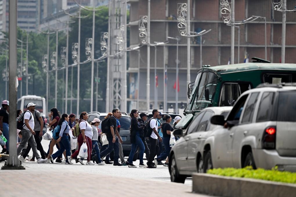 12月2日,在委內(nèi)瑞拉首都加拉加斯,行人在早高峰時段穿過玻利瓦爾大街。新華社記者李木子攝