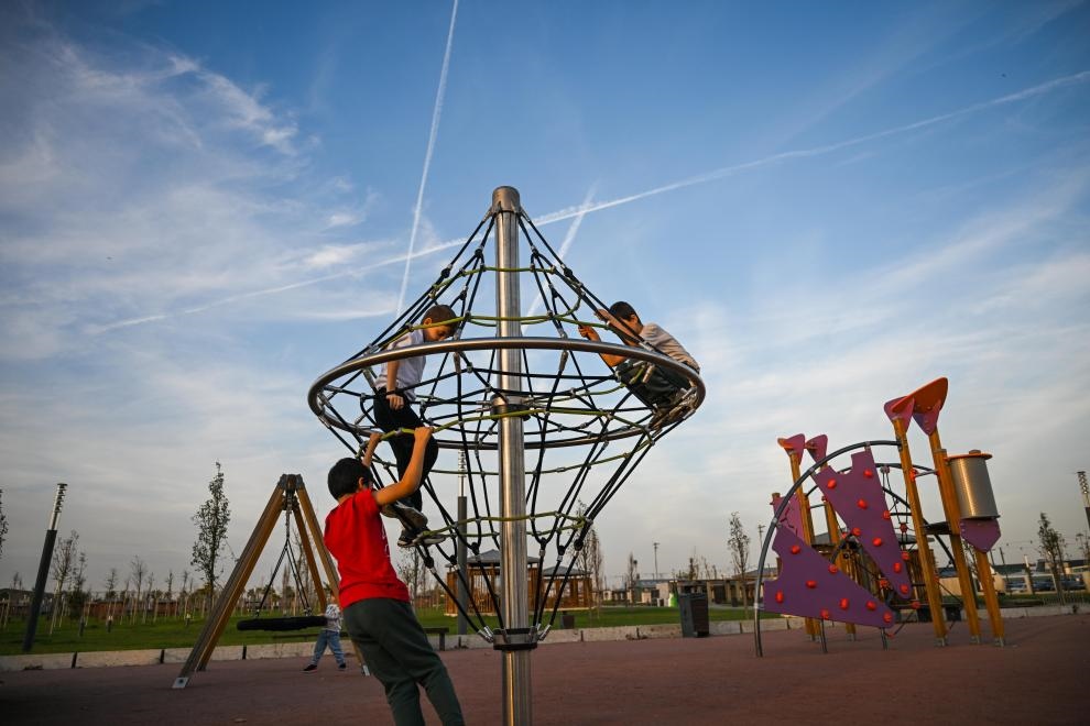 2025年11月21日,兒童在土耳其伊斯坦布爾阿塔圖爾克機(jī)場舊址玩耍。新華社記者 劉磊 攝