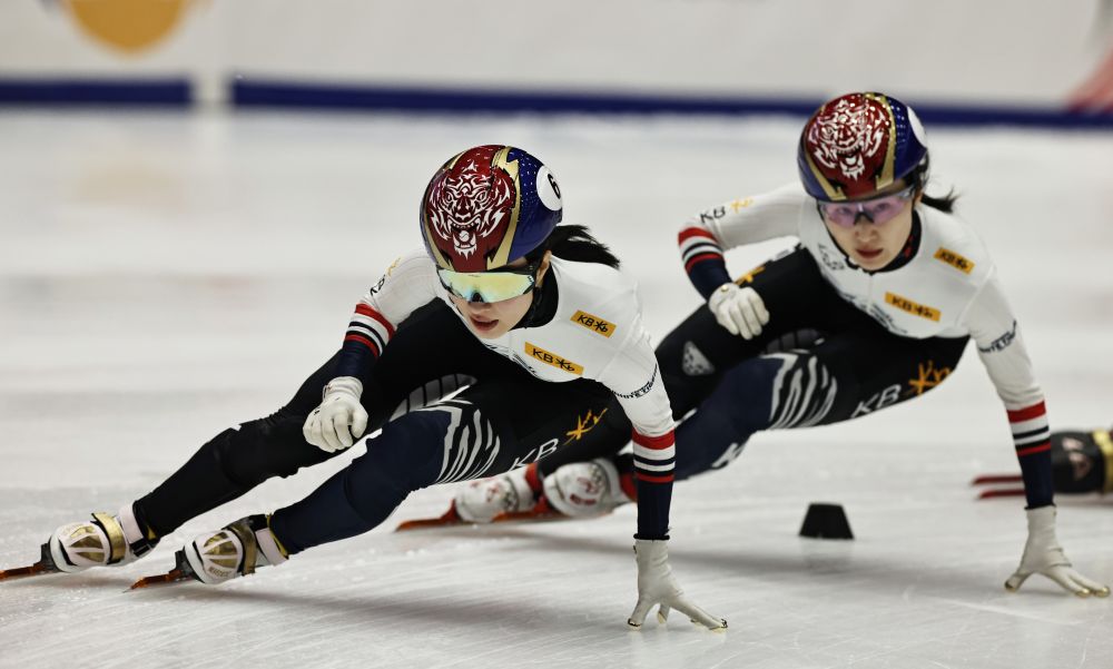 資料圖:韓國選手金吉莉(左)、崔敏靜在2025-2026賽季短道速滑世界巡回賽暨米蘭冬奧會(huì)資格賽第三站女子1500米A組決賽中。新華社記者 高靜 攝