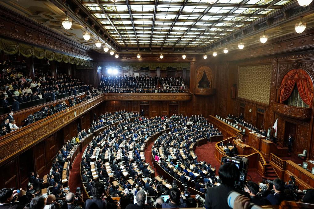 這是1月23日在日本東京拍攝的國會眾議院全體會議現場。日本眾議院議長額賀福志郎當天在眾議院全體會議上宣讀解散詔書,日本眾議院正式解散。新華社記者賈浩成攝