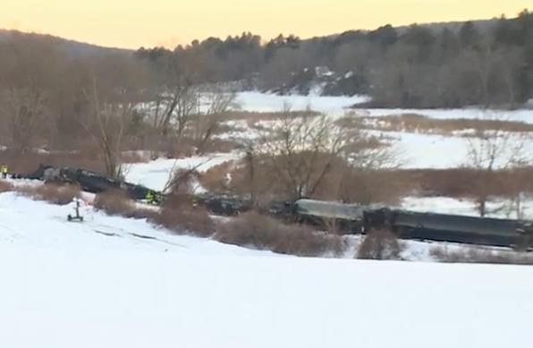 中新網(wǎng)2月6日電 據(jù)美媒報道,當?shù)卣Q,美國東部時間5日上午,一列載有危險化學品的貨運列車在康涅狄格州曼斯菲爾德鎮(zhèn)脫軌,部分車廂滑入附近一條河中。