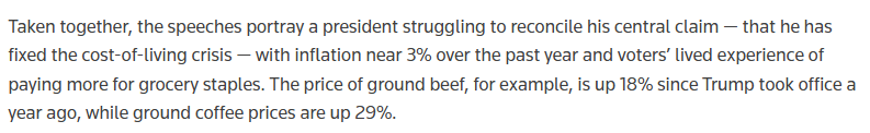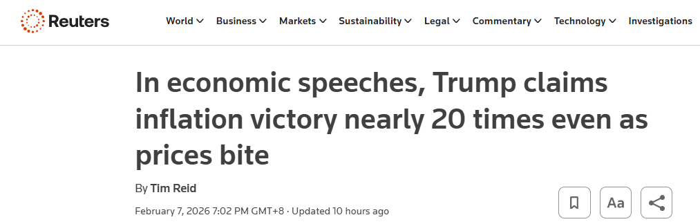 報(bào)道認(rèn)為,這些數(shù)據(jù)與美方“已解決生活成本危機(jī)”的表述形成反差。而相關(guān)言論將通脹問題描述為“已經(jīng)解決”,這一說法難以與民眾在超市等日常消費(fèi)場(chǎng)景中的體驗(yàn)相吻合。