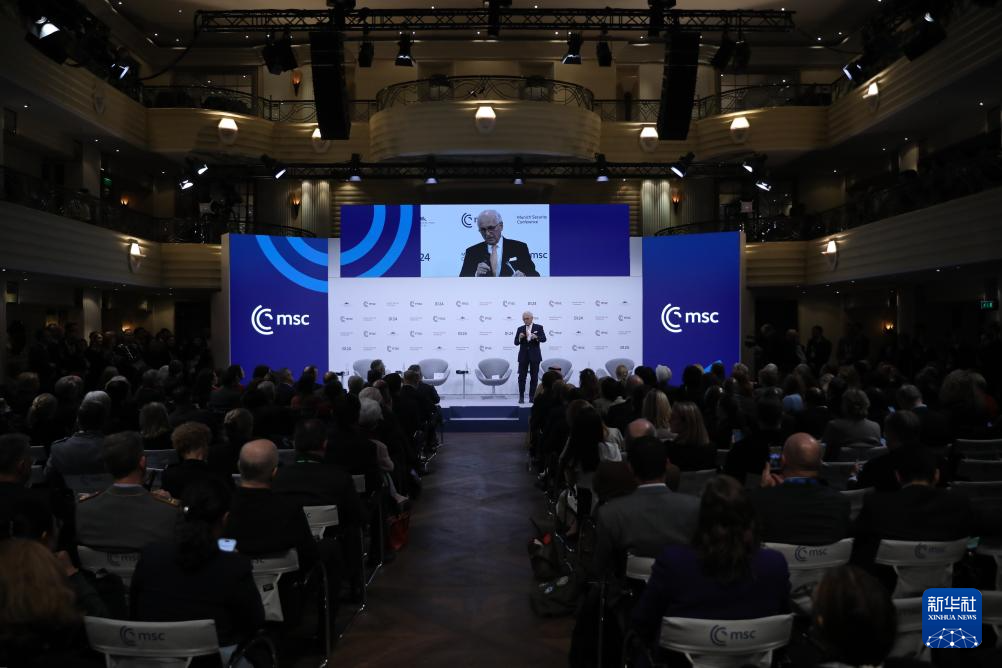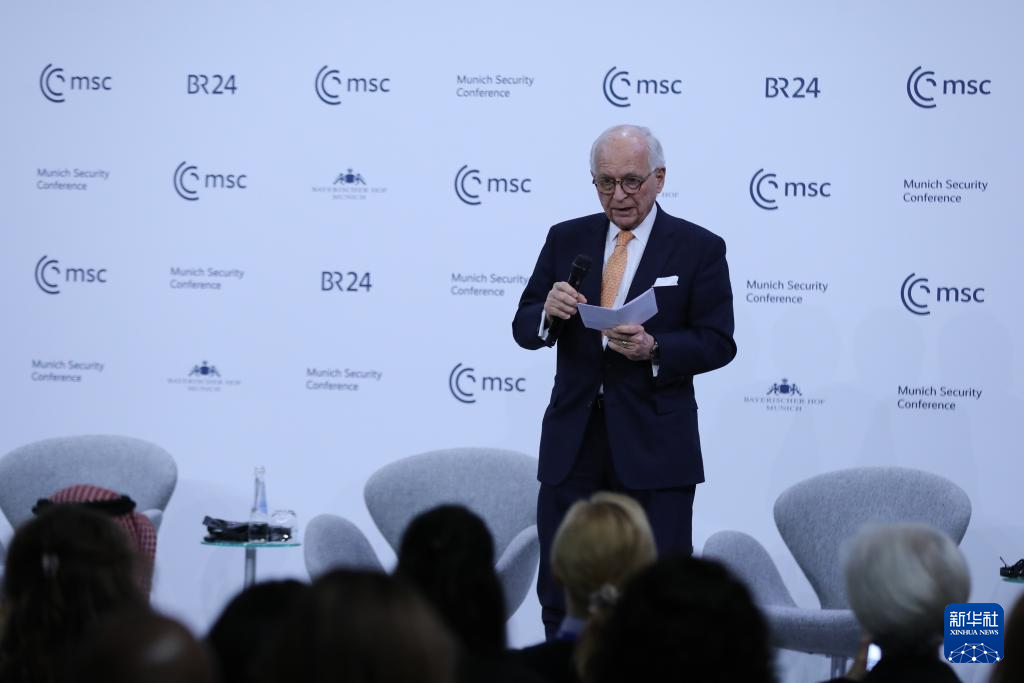 2月15日,在德國(guó)慕尼黑,慕安會(huì)主席沃爾夫?qū)ひ辽旮駹栐陂]幕式上致辭。新華社記者 杜哲宇 攝