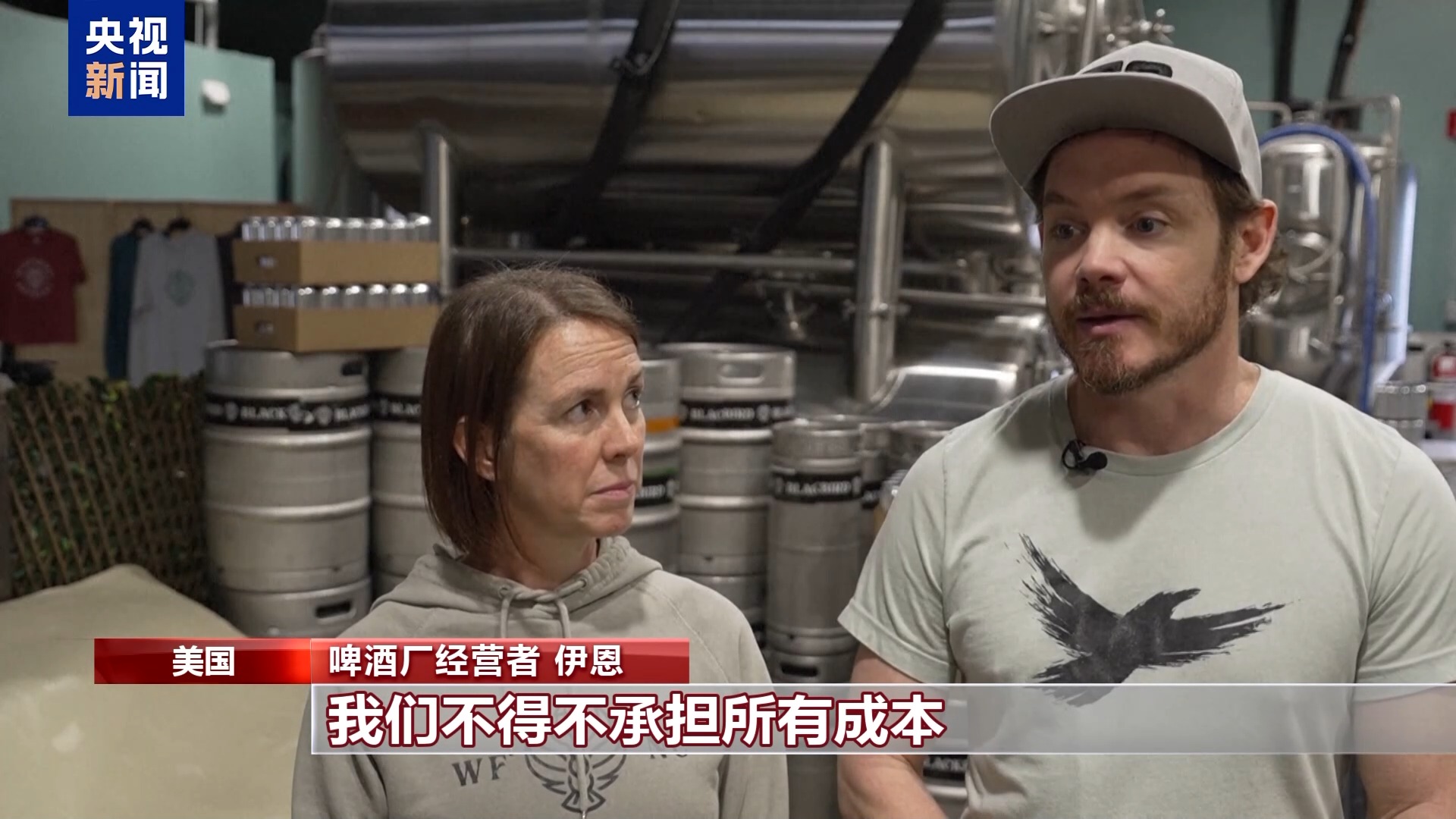 伊恩和哈莫妮在北卡羅來納州韋克福里斯特經營一家啤酒廠。他們表示,啤酒廠大約50%的原料依賴進口,到目前為止,他們一直在自行承擔這些額外的成本。