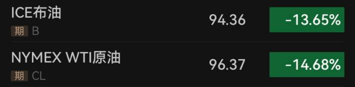 伴隨股市大漲,國際油價(jià)、貴金屬價(jià)格也出現(xiàn)大幅波動(dòng)。國際市場原油價(jià)格“高臺(tái)跳水”,截至8日13:00,WTI原油期貨盤中一度跌幅超過19%,跌破每桶100美元關(guān)口,達(dá)91.05美元/桶。布倫特原油期貨一度跌超16%,達(dá)最低91.7美元/桶。
