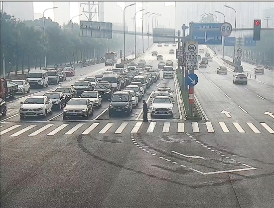 接下來(lái)會(huì)發(fā)生什么呢?通過(guò)視頻監(jiān)控可以看到,東西向的車輛有一部分開始動(dòng)起來(lái),但老人左手邊三個(gè)車道的車都紋絲不動(dòng),等著老人安全走過(guò)來(lái)。
