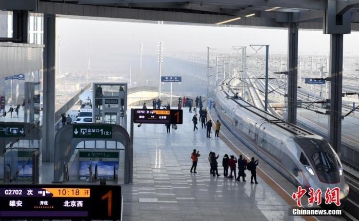 12月27日,一輛復(fù)興號(hào)動(dòng)車組列車駛?cè)胄郯舱?。中新社記者韓冰攝