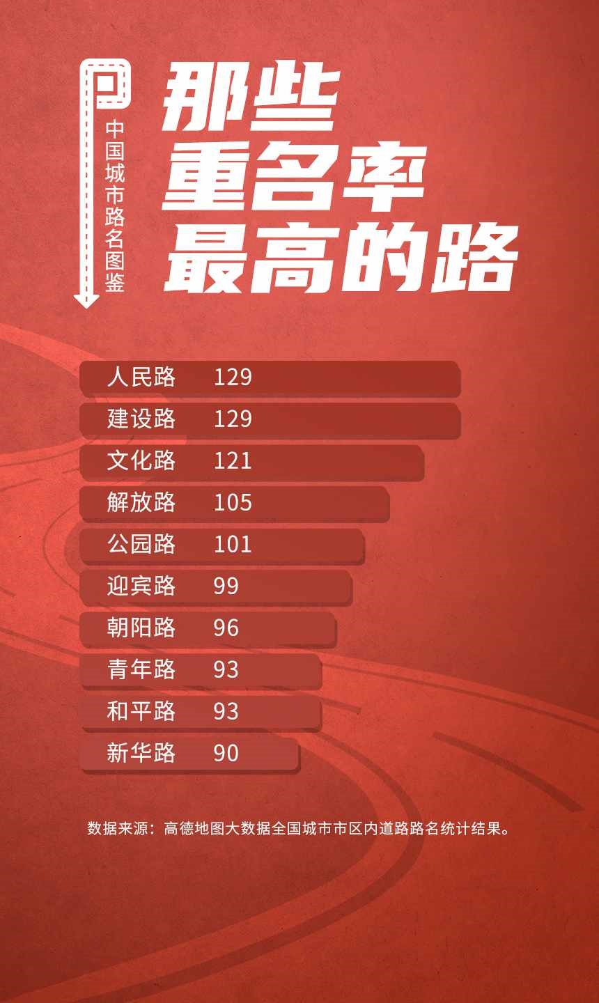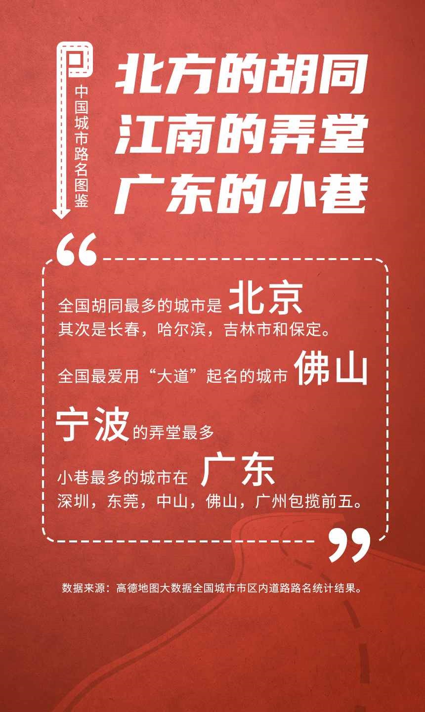 榜單顯示,人民路和建設(shè)路是全國重名率最高的道路,均有129個(gè)城市采用。此外,全國胡同最多的城市是北京;弄堂最多的城市是寧波;“小巷”最多的城市都在廣東省,深圳、東莞、中山、佛山和廣州包攬前五;“大道”最多的城市是佛山。