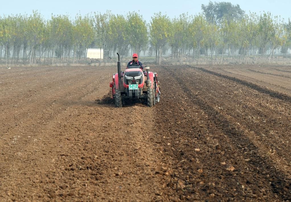 11月3日晚上,河南浚縣衛(wèi)溪街道西長村的田地里,農(nóng)民在耕地。(新華社記者李嘉南 攝)