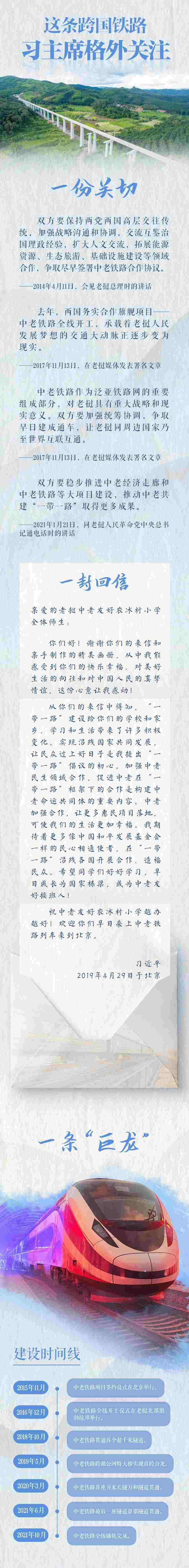 一條中老鐵路,為老撾乃至東南亞國家搭建起“富裕路”“幸福路”,也是“一帶一路”倡議造福周邊國家的生動縮影。在中老鐵路即將通車之際,央視網《聯播+》特制長圖解,帶您一起感受習主席對中老鐵路的關心,憧憬這條跨國鐵路即將拓寬、延長的中老兩國合作前景。