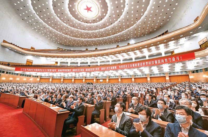 2021年5月28日,中國(guó)科學(xué)院第二十次院士大會(huì)、中國(guó)工程院第十五次院士大會(huì)和中國(guó)科學(xué)技術(shù)協(xié)會(huì)第十次全國(guó)代表大會(huì)在北京人民大會(huì)堂隆重召開。圖為大會(huì)現(xiàn)場(chǎng)。新華社記者李響/攝