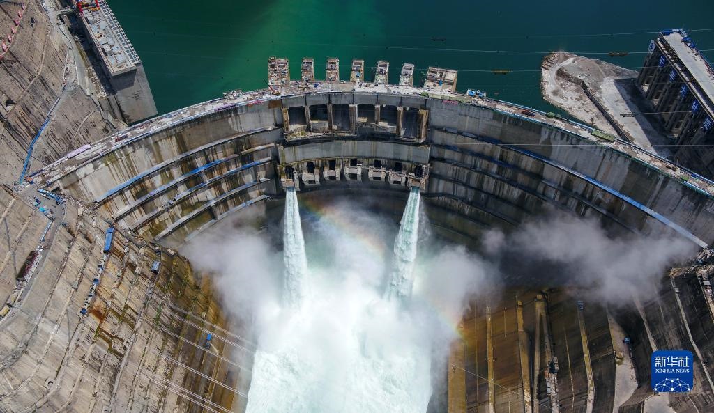 這是2021年6月10日拍攝的金沙江白鶴灘水電站。白鶴灘水電站是實(shí)施“西電東送”的國(guó)家重大工程,是當(dāng)今世界在建規(guī)模最大、技術(shù)難度最高的水電工程(無人機(jī)照片)。新華社記者 胥冰潔 攝