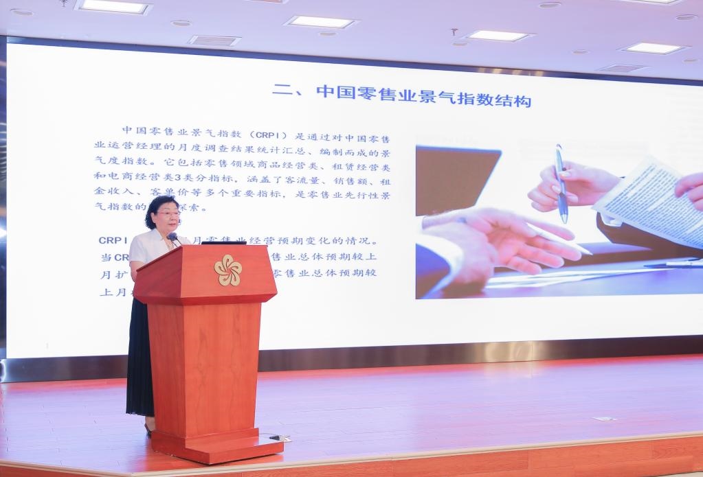 中國(guó)商業(yè)聯(lián)合會(huì)副會(huì)長(zhǎng)張麗君發(fā)布中國(guó)零售業(yè)景氣指數(shù)(受訪對(duì)象供圖)