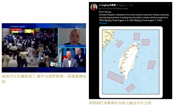 總臺(tái)德語(yǔ)、塞爾維亞語(yǔ)、阿爾巴尼亞語(yǔ)網(wǎng)紅主播通過網(wǎng)紅產(chǎn)品或與對(duì)象國(guó)家主流媒體連線積極發(fā)聲。通過《快閻快語(yǔ)--佩洛西竄訪臺(tái)灣:錯(cuò)誤時(shí)間的錯(cuò)誤選擇》、《東部戰(zhàn)區(qū)已在臺(tái)島周圍開展聯(lián)合軍事行動(dòng)》等一系列新聞產(chǎn)品闡明我方立場(chǎng),介紹中方反制措施的合理性與必要性。