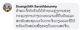 老撾黨中央機(jī)關(guān)報(bào)前總編輯、社長(zhǎng)端吉·薩瓦本彌(Duangchith Savathbounmy)留言:“認(rèn)同我的祖國(guó)對(duì)臺(tái)灣問題的表態(tài),支持一個(gè)中國(guó)原則,臺(tái)灣是中國(guó)不可分割的一部分?!?/p>