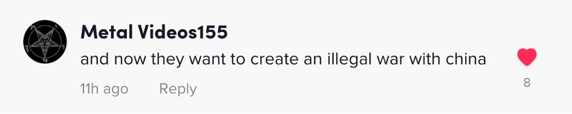 網(wǎng)友Metal Videos155:“不僅如此,現(xiàn)在美國(guó)還想要發(fā)動(dòng)一場(chǎng)非法的對(duì)華戰(zhàn)爭(zhēng)?!?/p>