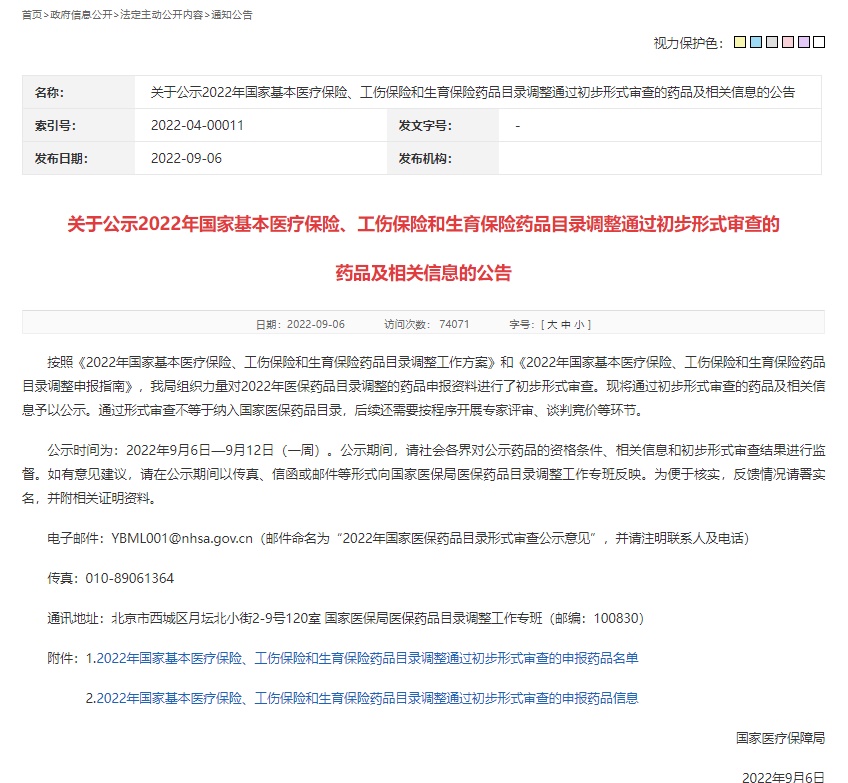 根據(jù)2022年國家基本醫(yī)療保險(xiǎn)、工傷保險(xiǎn)和生育保險(xiǎn)藥品目錄(以下簡稱國家醫(yī)保藥品目錄)調(diào)整工作安排,國家醫(yī)保局近期對申報(bào)藥品進(jìn)行了初步形式審查,并對通過審查的藥品和信息進(jìn)行了公示。現(xiàn)就有關(guān)工作情況解讀如下。