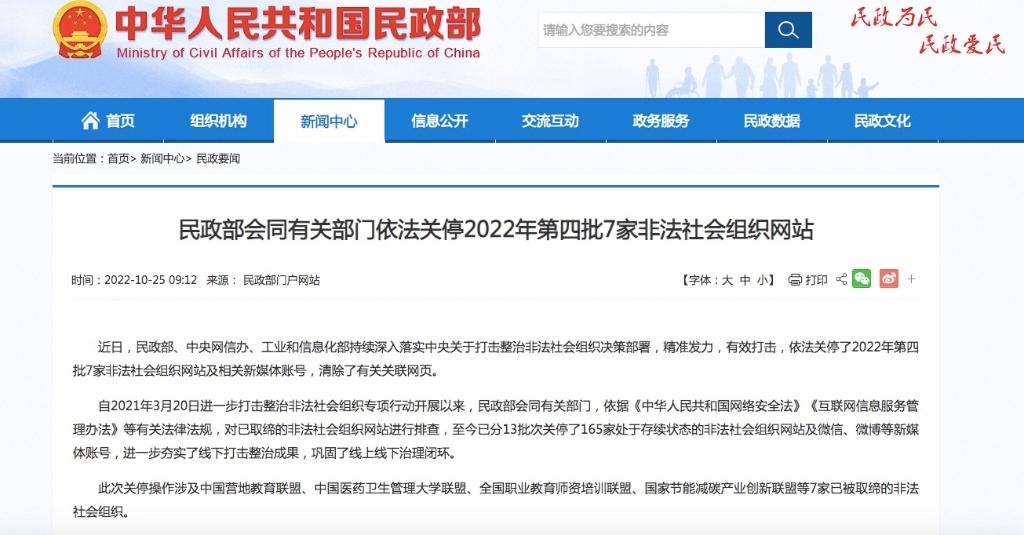 據(jù)了解,自2021年3月20日進(jìn)一步打擊整治非法社會組織專項行動開展以來,民政部會同有關(guān)部門,依據(jù)有關(guān)法律法規(guī),對已取締的非法社會組織網(wǎng)站進(jìn)行排查,至今已分13批次關(guān)停了165家處于存續(xù)狀態(tài)的非法社會組織網(wǎng)站及微信、微博等新媒體賬號,進(jìn)一步夯實了線下打擊整治成果,鞏固了線上線下治理閉環(huán)。
