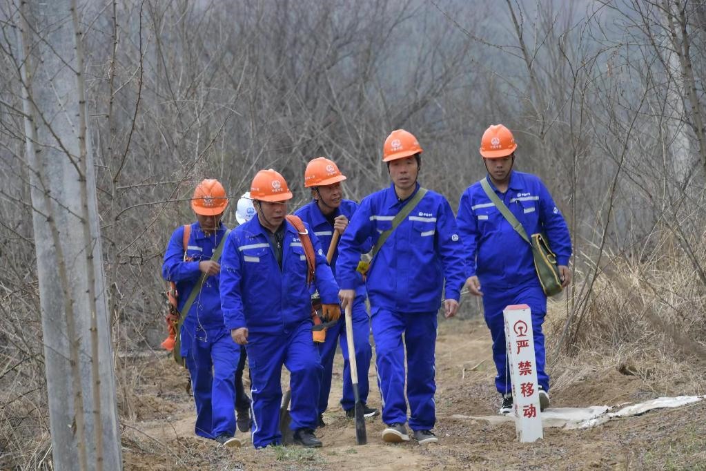 圖為施工人員在西延高鐵進(jìn)行臨電巡線作業(yè)。(中鐵一局供圖)
