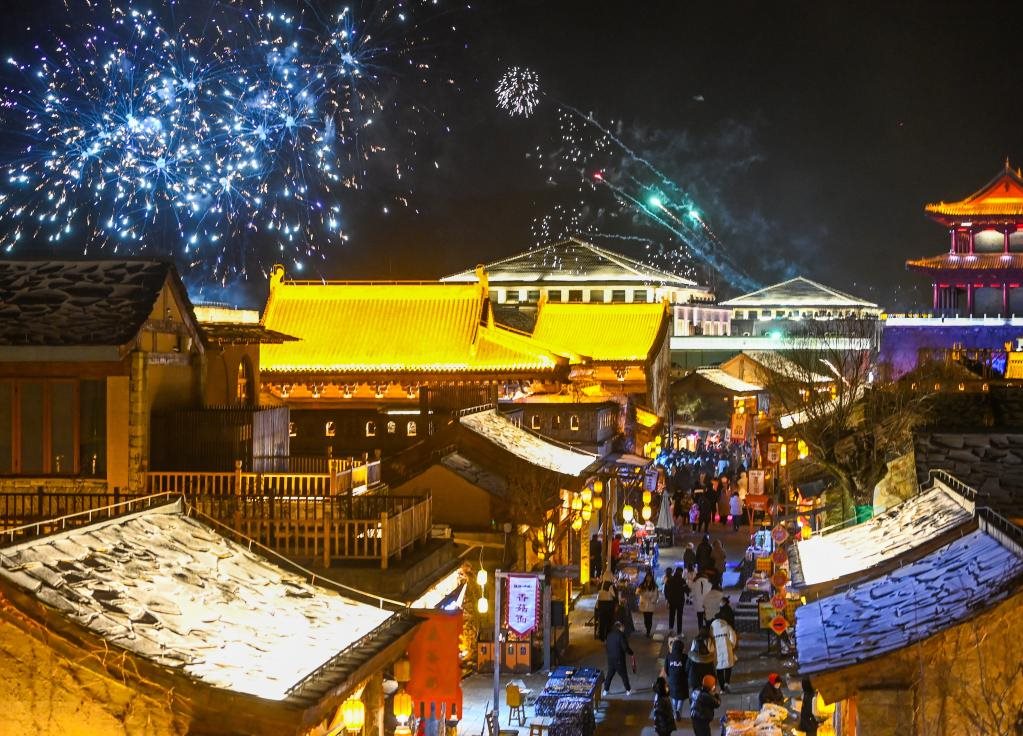 游客在金延安文化旅游產業(yè)園內游覽(1月14日攝)。新華社發(fā)(鄒競一攝)