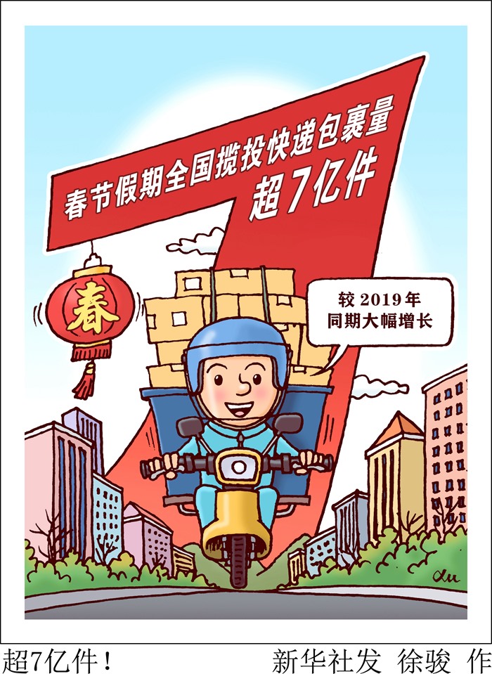 國(guó)家郵政局表示,今年春節(jié)期間,特色產(chǎn)品和節(jié)慶寄遞需求旺盛,農(nóng)產(chǎn)品繼續(xù)保持增長(zhǎng)態(tài)勢(shì)。郵政管理部門(mén)始終堅(jiān)持“保供應(yīng)、保暢通、保穩(wěn)定、保安全”,全力保障春節(jié)期間醫(yī)療物資寄遞、行業(yè)安全穩(wěn)定運(yùn)行和寄遞服務(wù)暢通有序,為人民群眾度過(guò)幸福安康歡樂(lè)祥和的春節(jié)提供了良好的寄遞服務(wù)保障。