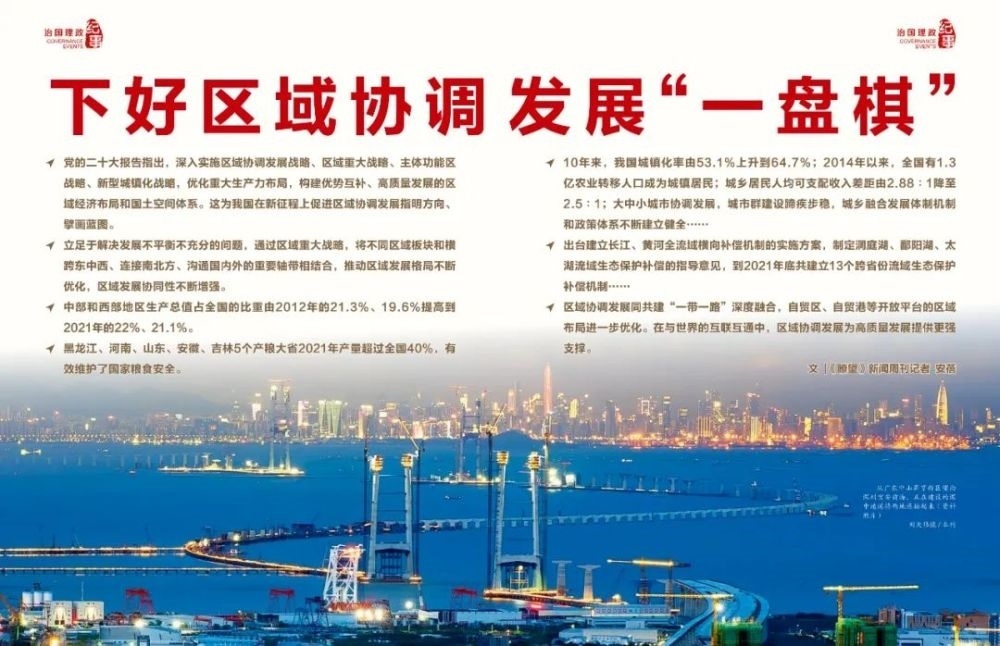 區(qū)域協(xié)調(diào)發(fā)展,是一盤著眼全局、縱橫聯(lián)動(dòng)?xùn)|西南北、統(tǒng)籌聯(lián)通國(guó)內(nèi)國(guó)外的發(fā)展大棋局。