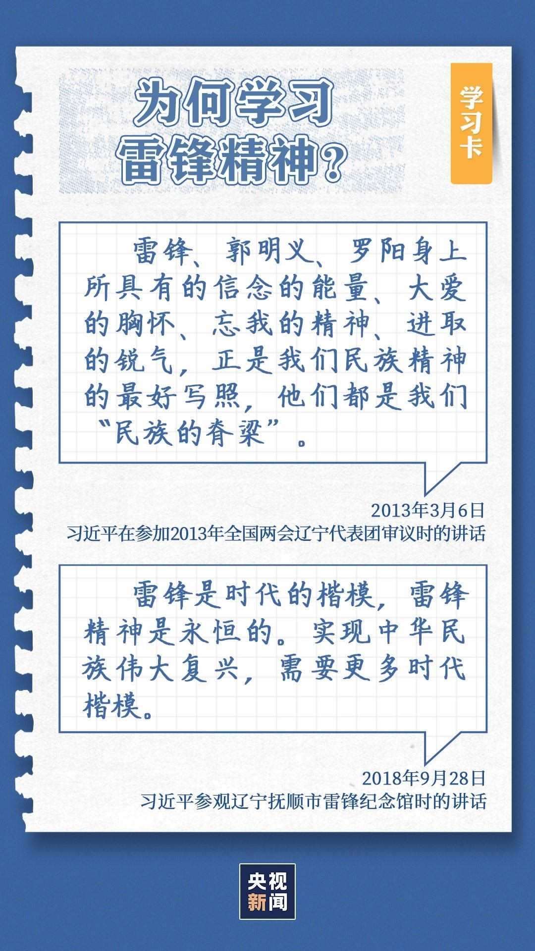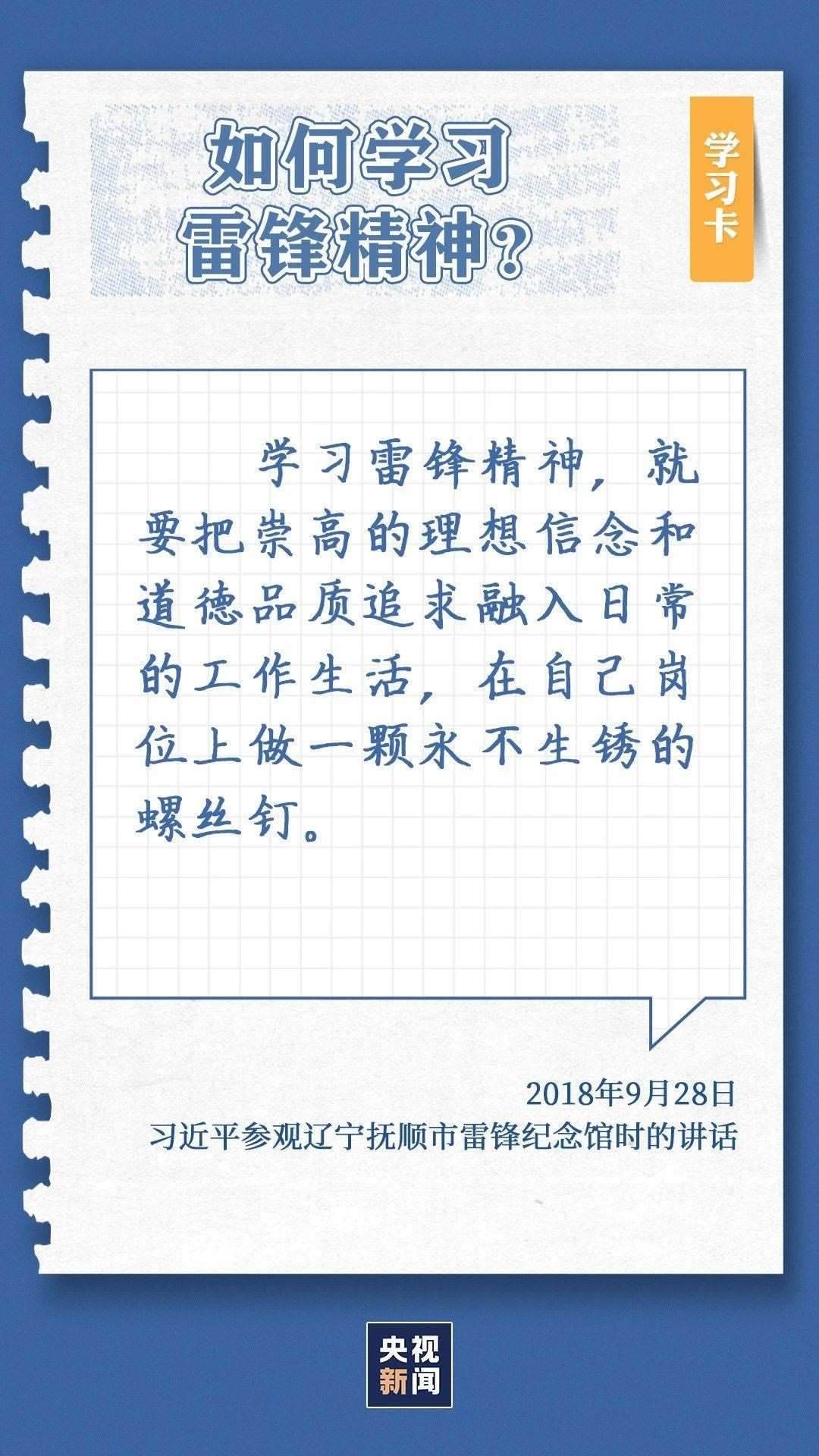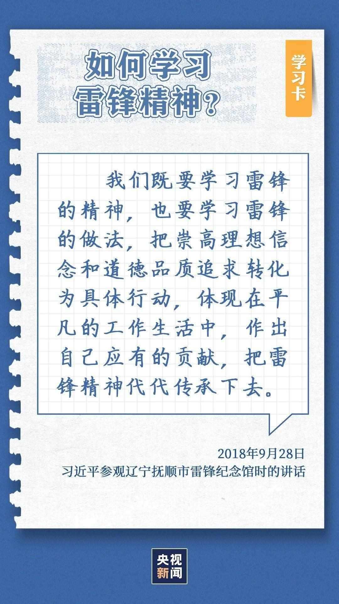 中共中央總書記、國家主席、中央軍委主席習(xí)近平近日作出重要指示指出,今年是毛澤東等老一輩革命家為雷鋒同志題詞60周年。60年來,學(xué)雷鋒活動在全國持續(xù)深入開展,雷鋒的名字家喻戶曉,雷鋒的事跡深入人心,雷鋒精神滋養(yǎng)著一代代中華兒女的心靈。實踐證明,無論時代如何變遷,雷鋒精神永不過時。在新時代新征程上,如何弘揚雷鋒精神?點擊學(xué)習(xí)卡↓