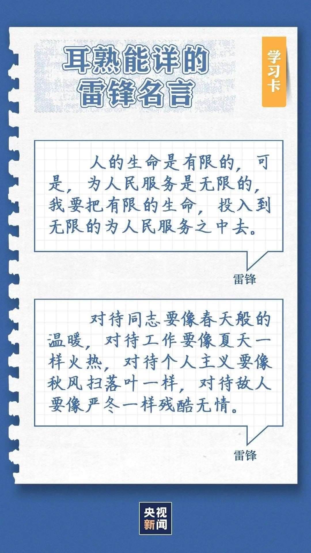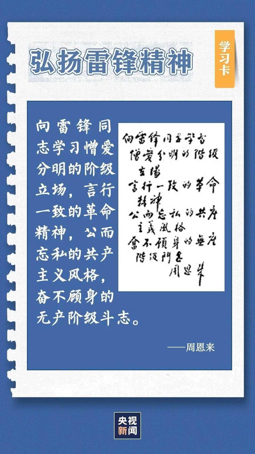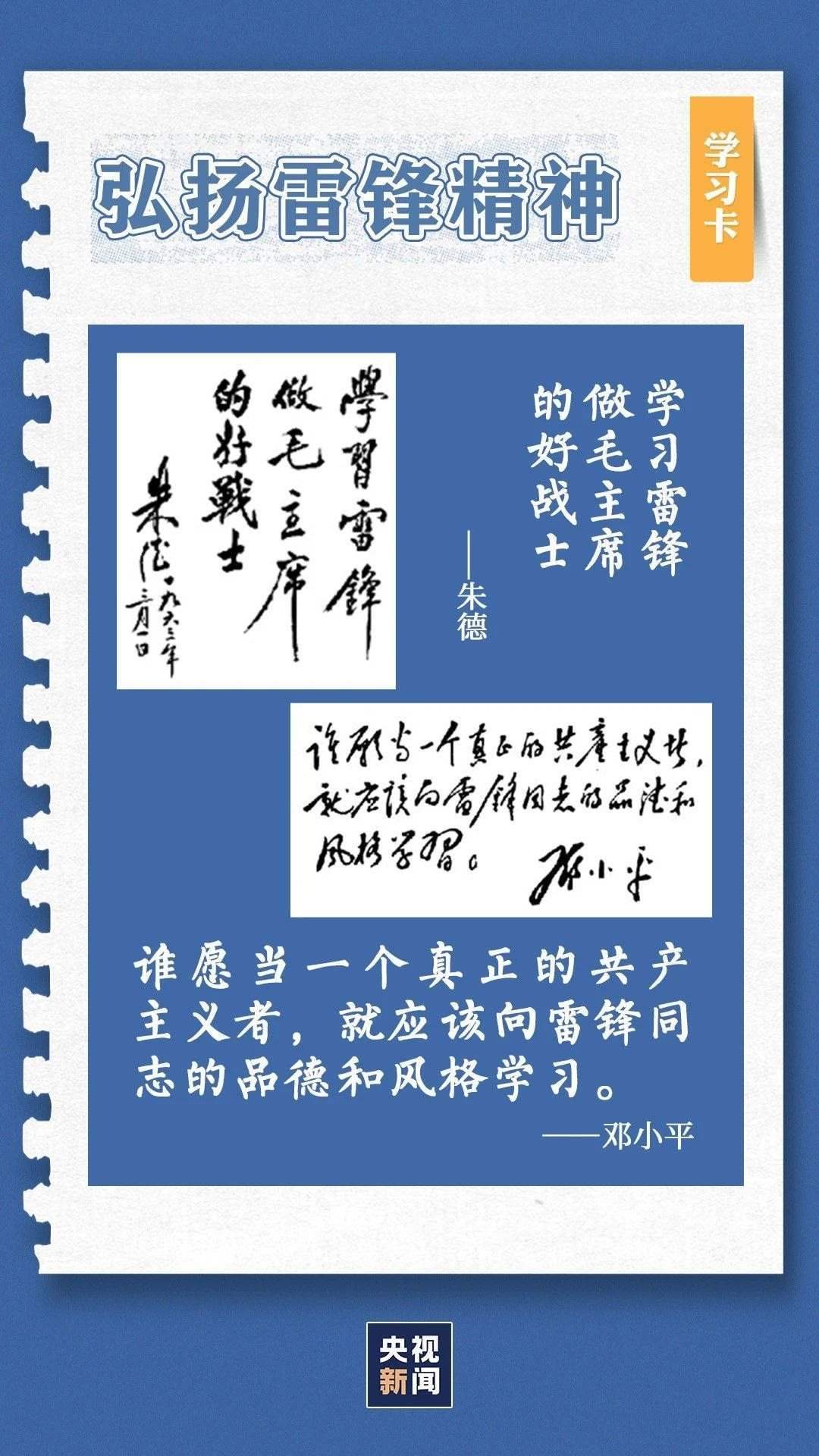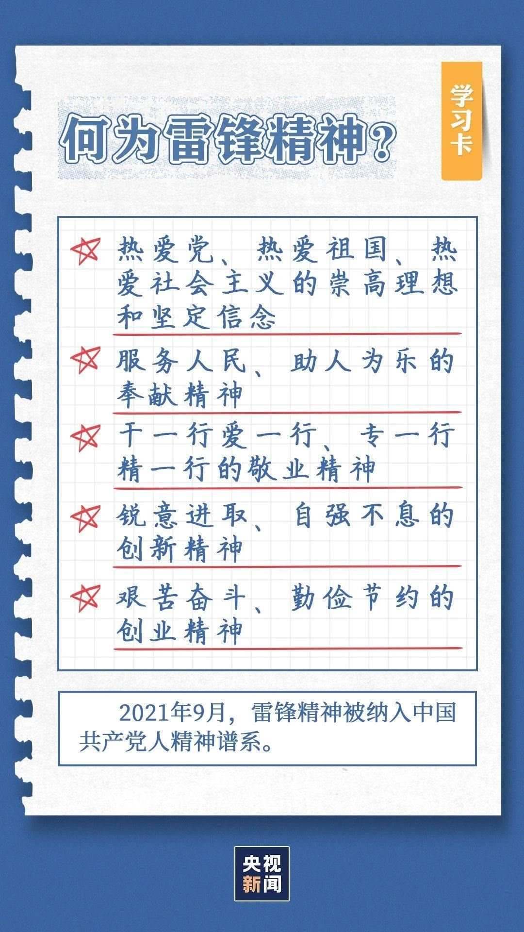 中共中央總書記、國家主席、中央軍委主席習(xí)近平近日作出重要指示指出,今年是毛澤東等老一輩革命家為雷鋒同志題詞60周年。60年來,學(xué)雷鋒活動在全國持續(xù)深入開展,雷鋒的名字家喻戶曉,雷鋒的事跡深入人心,雷鋒精神滋養(yǎng)著一代代中華兒女的心靈。實踐證明,無論時代如何變遷,雷鋒精神永不過時。在新時代新征程上,如何弘揚雷鋒精神?點擊學(xué)習(xí)卡↓