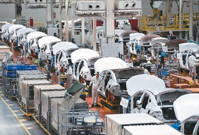 2月24日,在廣州市番禺區(qū)的廣汽埃安新能源汽車股份有限公司,工人在總裝生產(chǎn)線上工作。新華社記者鄧華攝