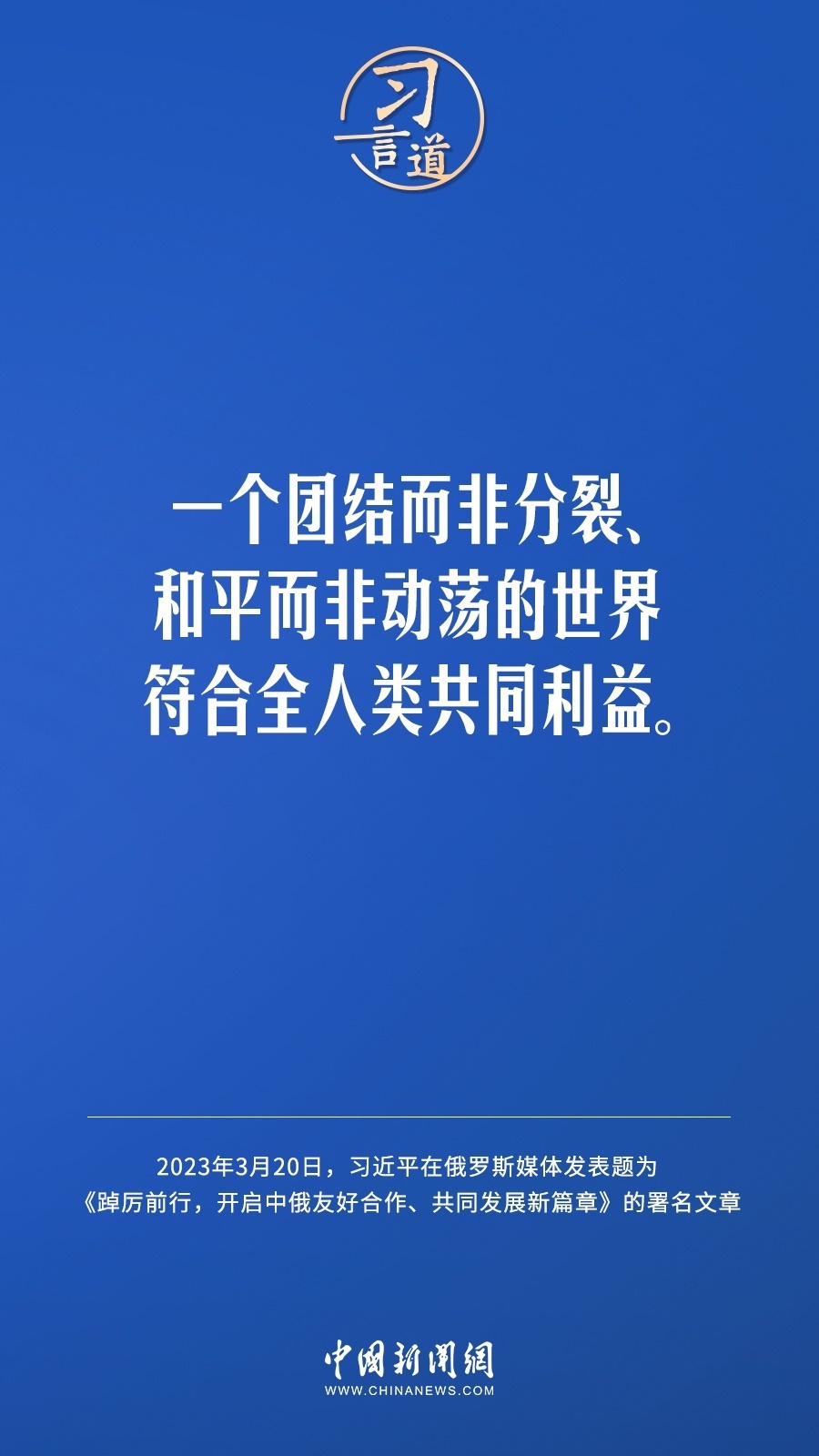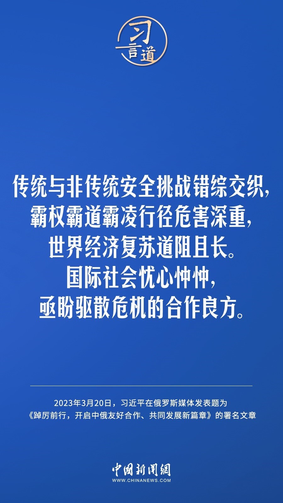 3月20日,在赴莫斯科對(duì)俄羅斯聯(lián)邦進(jìn)行國(guó)事訪問之際,國(guó)家主席習(xí)近平在《俄羅斯報(bào)》和俄新社網(wǎng)站發(fā)表題為《踔厲前行,開啟中俄友好合作、共同發(fā)展新篇章》的署名文章。習(xí)近平指出——