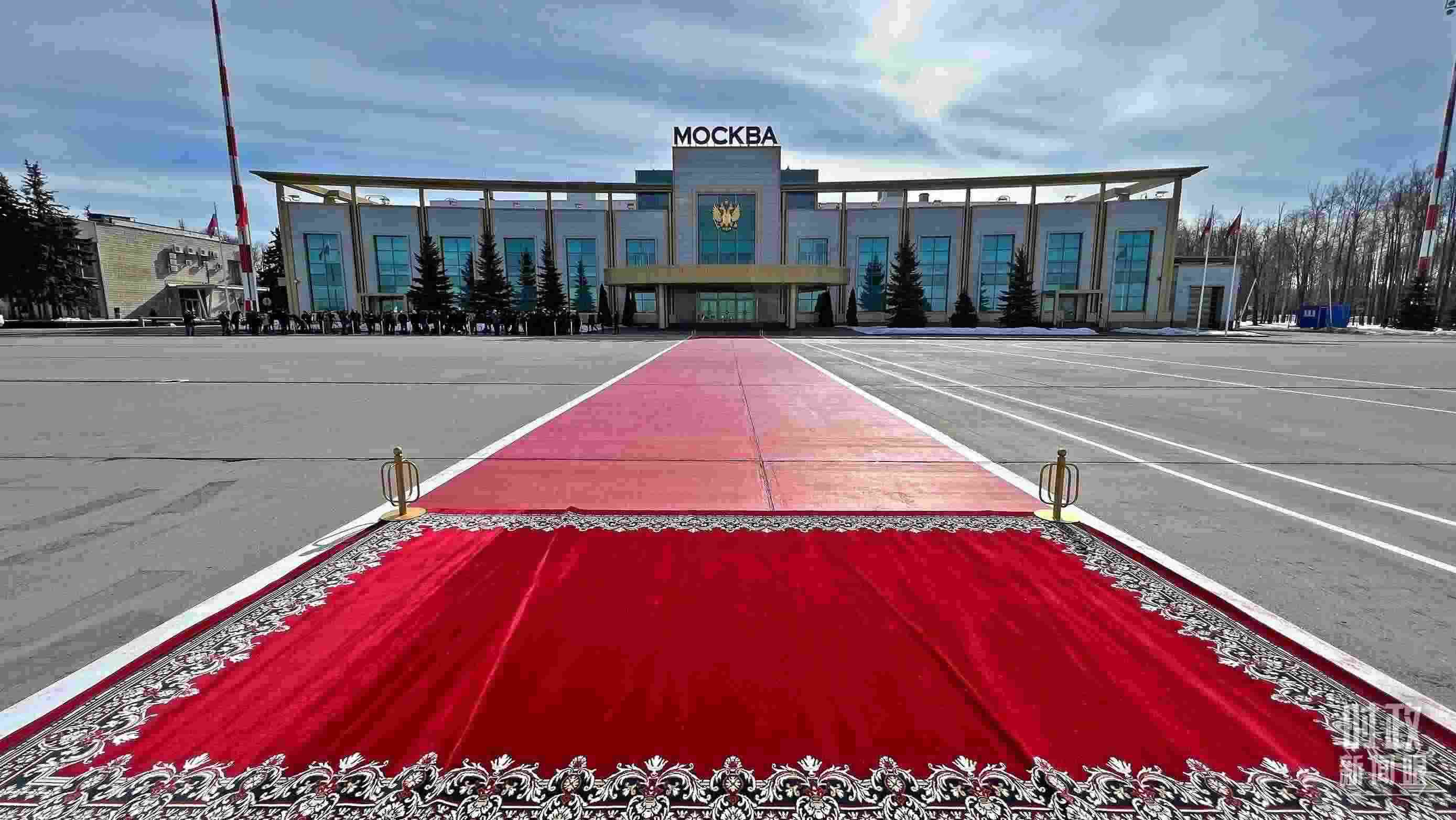 △迎賓儀式現(xiàn)場(chǎng)的紅毯。(總臺(tái)央視記者邢彬拍攝)