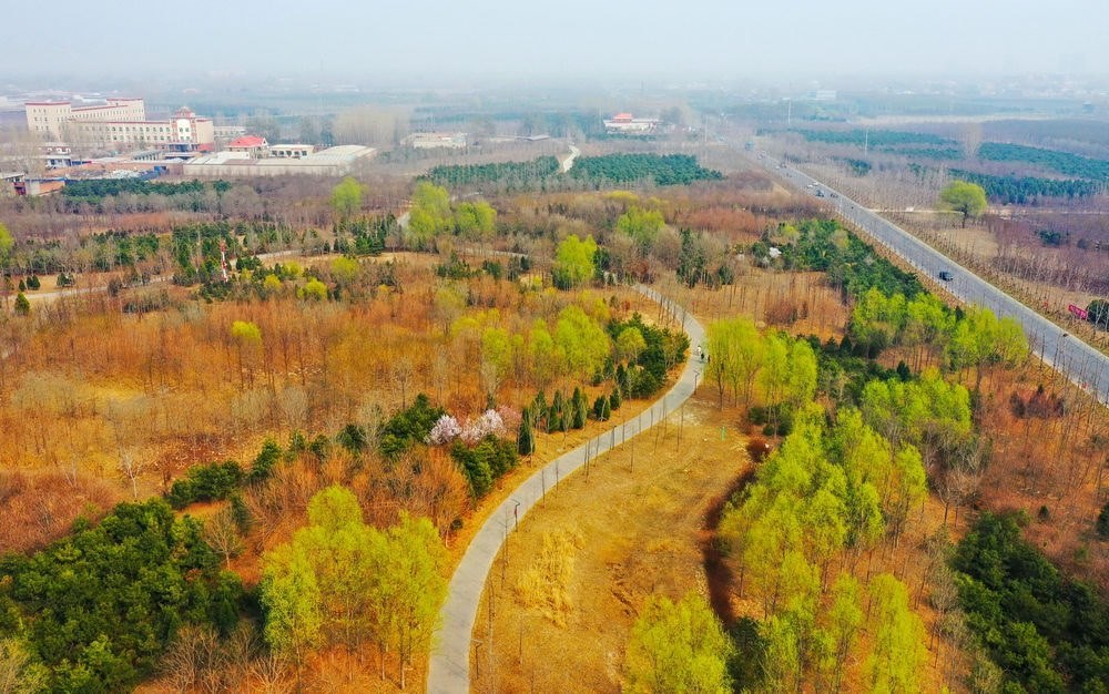 雄安新區(qū)千年秀林(3月20日攝,無人機(jī)照片)。截至2022年底,雄安新區(qū)累計造林46.9萬畝,森林覆蓋率由11%提高到34%。