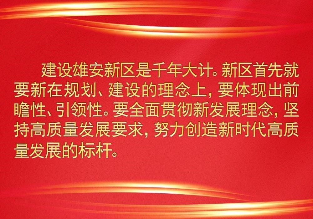 習(xí)近平總書記高瞻遠(yuǎn)矚謀劃推動雄安新區(qū)規(guī)劃建設(shè),他強(qiáng)調(diào),要貫徹高質(zhì)量發(fā)展要求,創(chuàng)造“雄安質(zhì)量”,在推動高質(zhì)量發(fā)展方面成為全國的一個樣板。