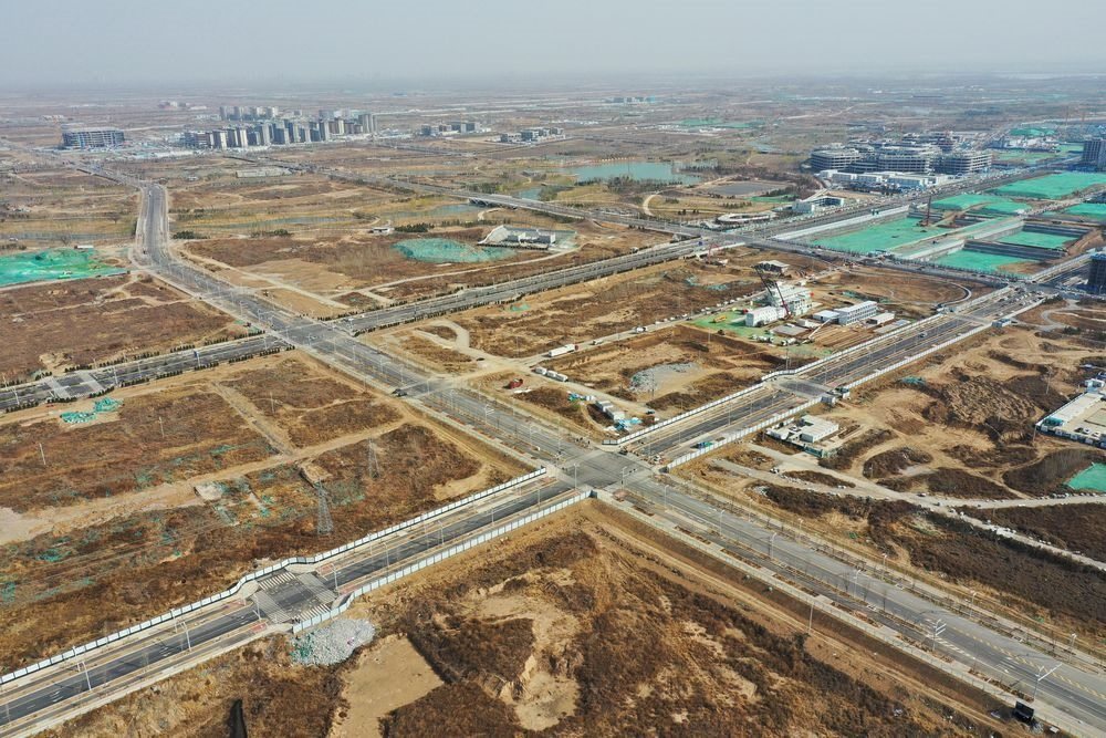 這是雄安新區(qū)啟動區(qū)內(nèi)的路網(wǎng)(3月24日攝,無人機(jī)照片)。