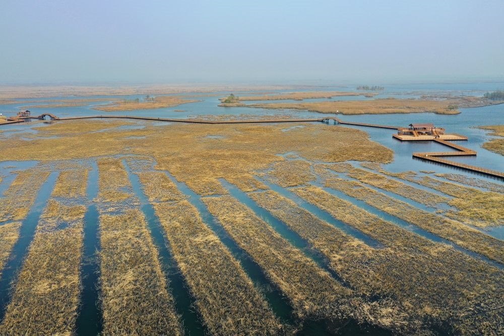 這是3月21日拍攝的白洋淀景區(qū)(無人機(jī)照片)。雄安新區(qū)設(shè)立以來,白洋淀經(jīng)過系統(tǒng)性生態(tài)治理,淀區(qū)水質(zhì)穩(wěn)定提升,躋身全國良好湖泊行列。